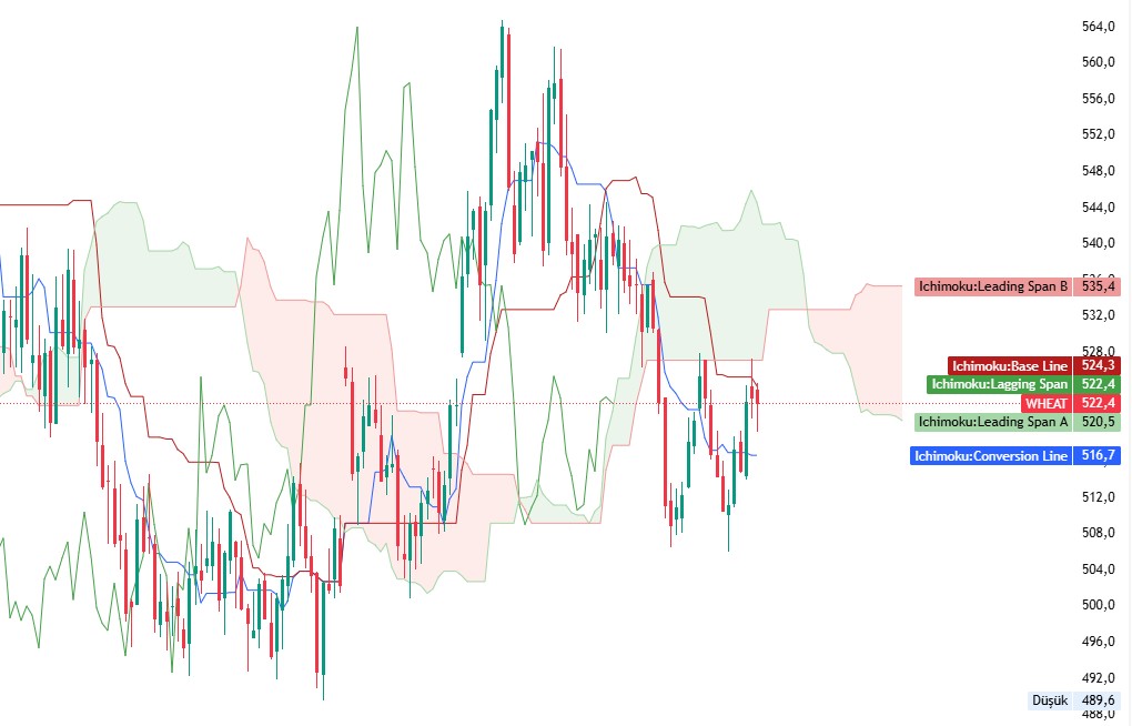 - Kırmızı Bulut: Senkou Span A, Senkou Span B'nin altındadır. Bu, düşüş trendi işaretidir.