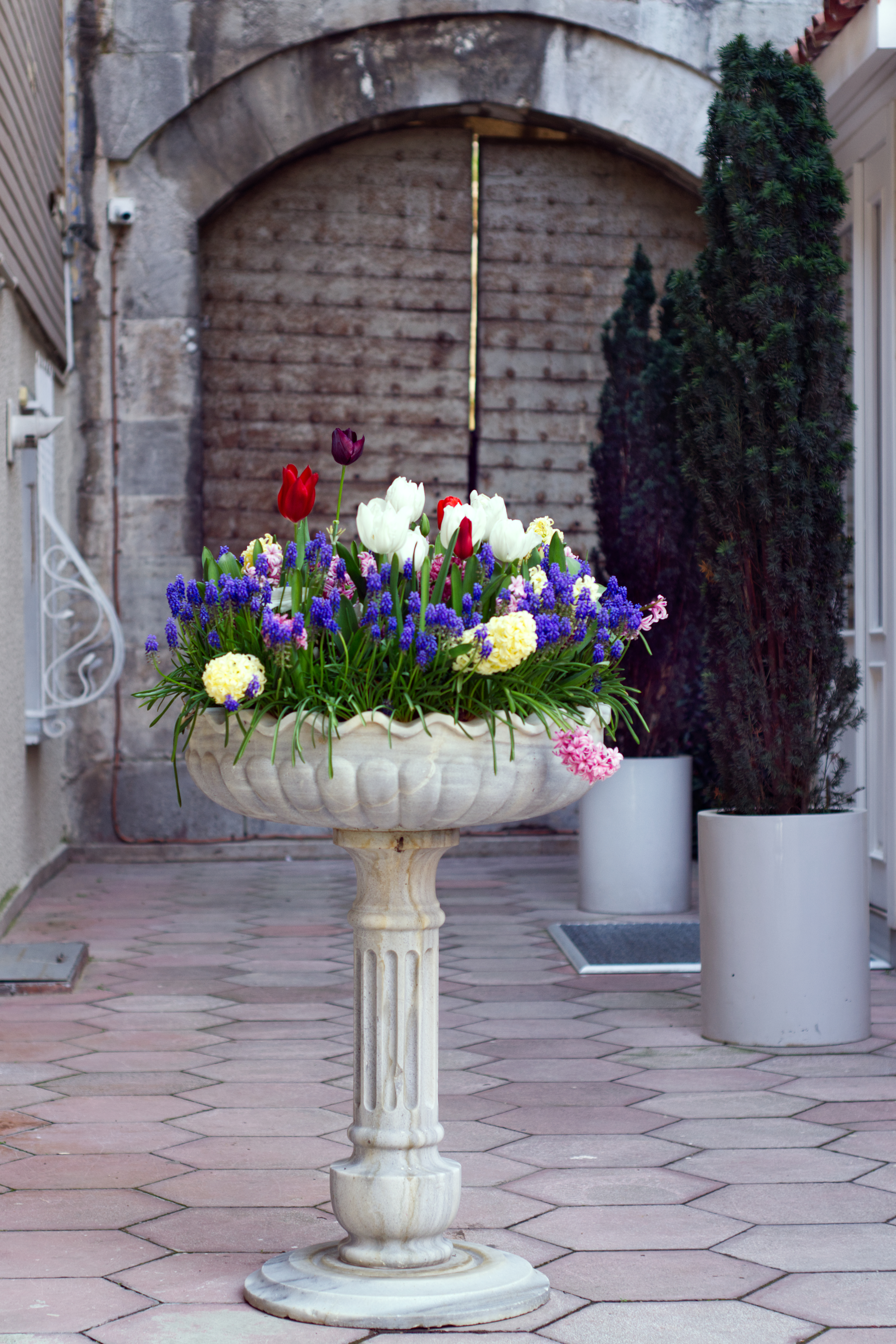 Büyük mermer sütun şeklinde saksıda çiçekler ve arkasında tarihi kapı. İstanbul'da sokak fotoğrafçılığı yaparken her an birbirinden güzel kareleri yakalamak mümkün. Bu güzellikleri görmek için İstanbul'u ve özellikle Sultanahmet ve tarihi yarımadayı ziyaret edin.Telifsizdir: Bu resmi ücretsiz olarak indirebilir ve kimsenin size telif iddiasında bulunmasından veya telif davası açmasından endişe etmeden özgürce kullanabilirsiniz. İsterseniz internet sitenizde ürettiğiniz içeriği süslemek için, isterseniz bir haber sitesinde veya ürün kataloğunuzda kullanın. Dilerseniz bastırıp evinizin veya iş yerinizin bir köşesine asın. Bu resmin, ihtiyaç duyduğunuz herhangi bir yerde size yardımcı olması beni mutlu eder. Ticari kullanımlar dahil özgürsünüz.